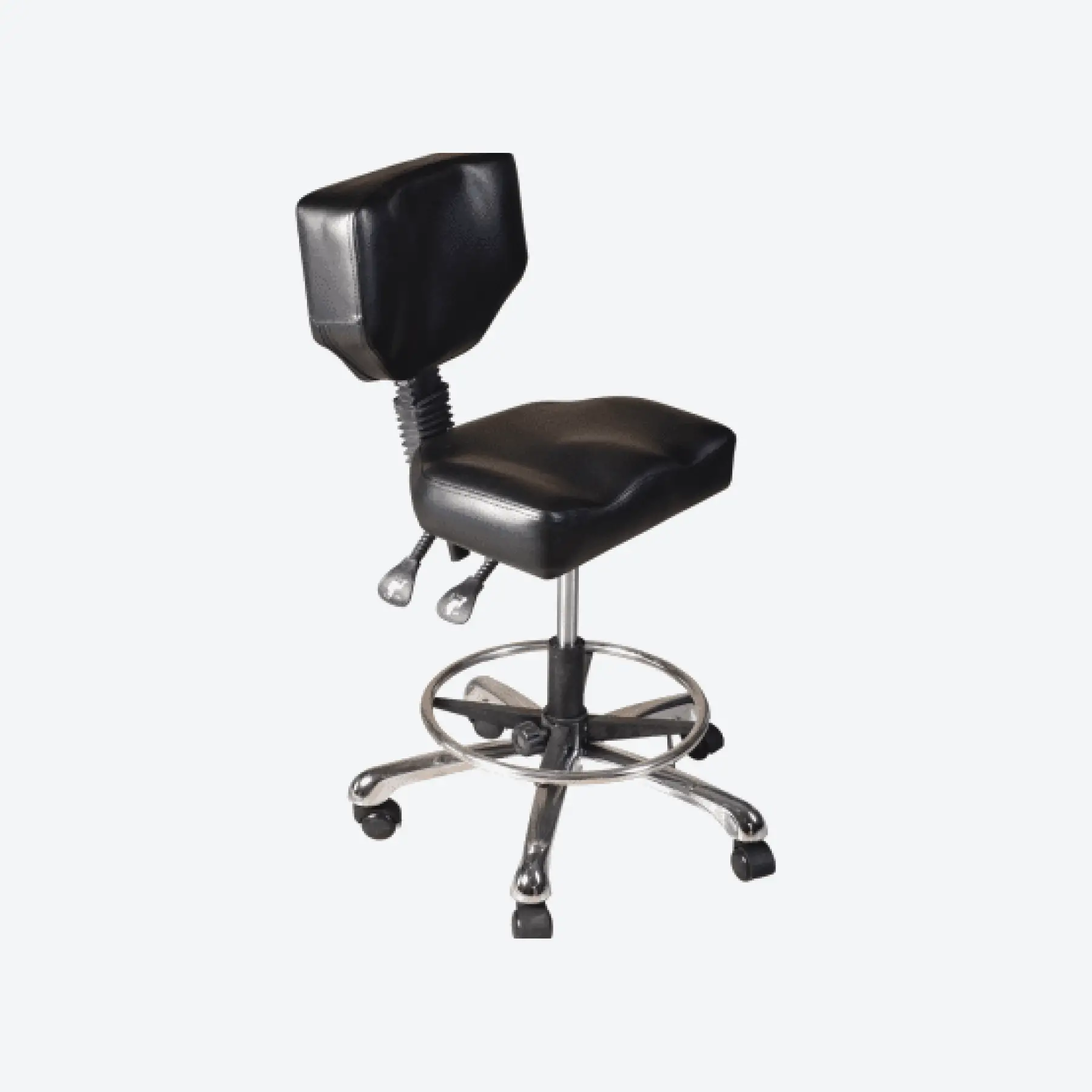 כיסא אורטופדי ברמת גימור גבוהה, עם משענת גב תומכת, ריפוד נוח במיוחד וחישוק רגליים מובנה להקלה בעבודה ממושכת. שליטה מלאה בזווית ובגובה מאפשרת התאמה מדויקת לכל עמדת עבודה, בעוד שהניידות השקטה והעיצוב היציב מספקים חוויית עבודה איכותית לאורך זמן.